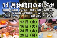 深山峠アートパークのWEBサイトをご覧いただき、ありがとうございます。11月の定休日が決まりましたのでお知らせ致します。///11月定休日///12日(...