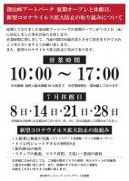 深山峠アートパーク 8月営業についてお知らせ致します。営業時間は引き続き短縮営業とさせて頂きますので予めご了承ください。また、新型コロナウ...