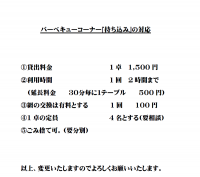 バーベキューテラス持ち込みに関するお知らせです。詳しくは添付ファイルをご参照ください。