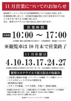 11月営業についてのお知らせ