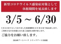 5月6日までとしておりました休館期間を延長致します。3/5~6/30ご利用予定のお客様には大変ご迷惑をお掛け致します。ご協力をお願い致します。
