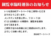 いつも深山峠アートパークをご利用いただきありがとうございます。メンテナンス作業に伴い、7/18~7/20(7/21は休館日)の期間中、観覧車を運休さ...